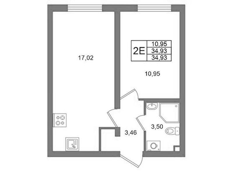 Однокомнатная квартира на 2-ом этаже 34,93 кв.м
