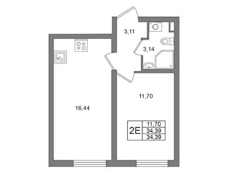 • Площадь34,39 м2