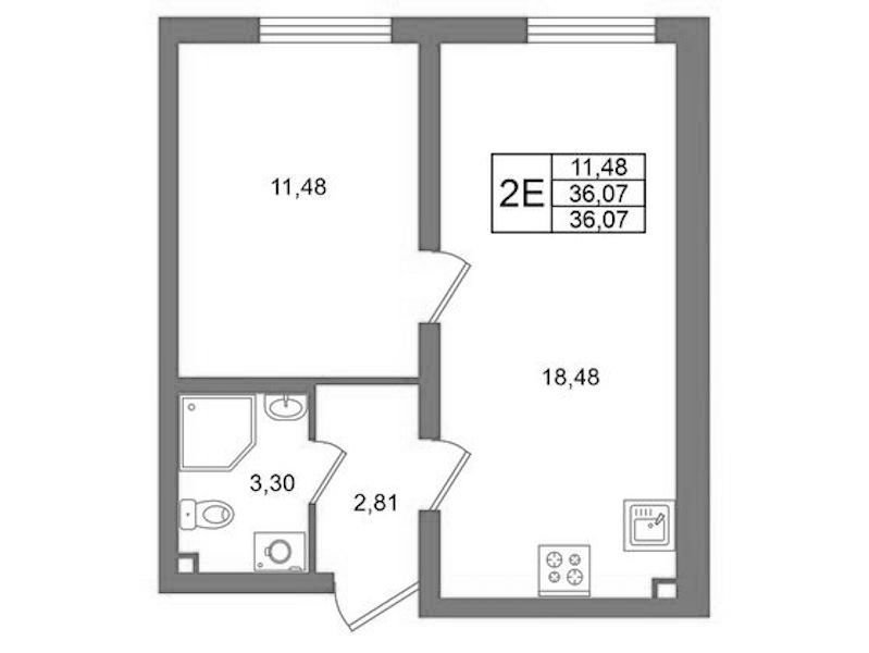 Однокомнатная квартира на 2-ом этаже 36,07 кв.м