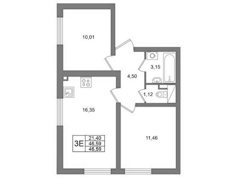 - Площадь46,59 м2