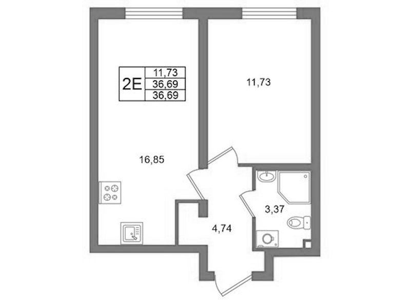 Однокомнатная квартира на 13-ом этаже 36,69 кв.м