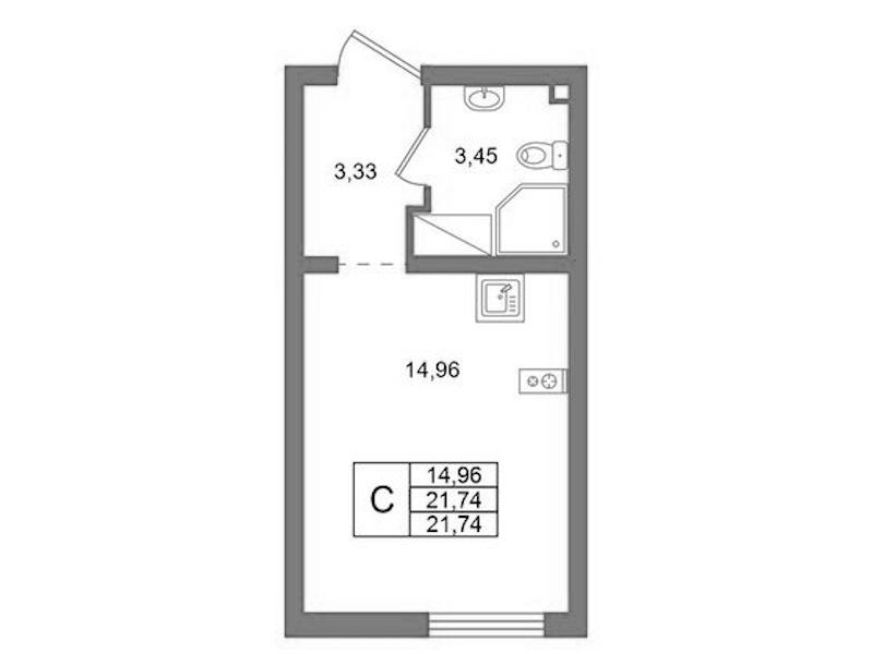 - Площадь21,74 м2