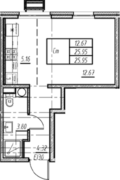 - Площадь25,95 м2