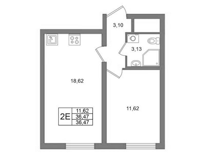 - Площадь36,47 м2