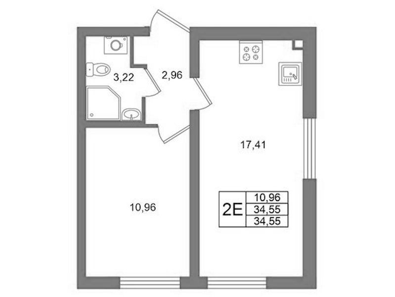 • Площадь34,55 м2