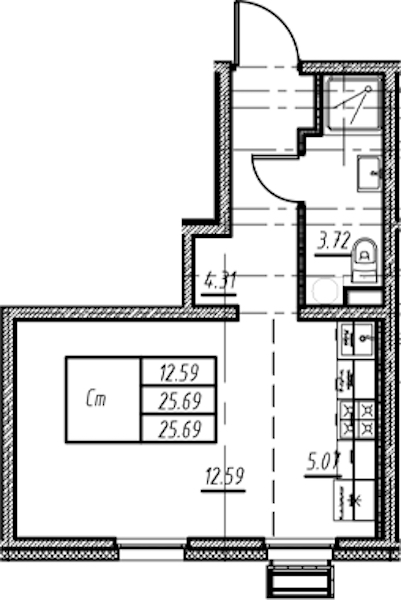 Квартира-студия на 3-ем этаже 25,69 кв.м