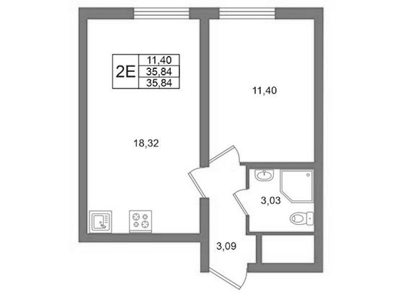 - Площадь35,84 м2