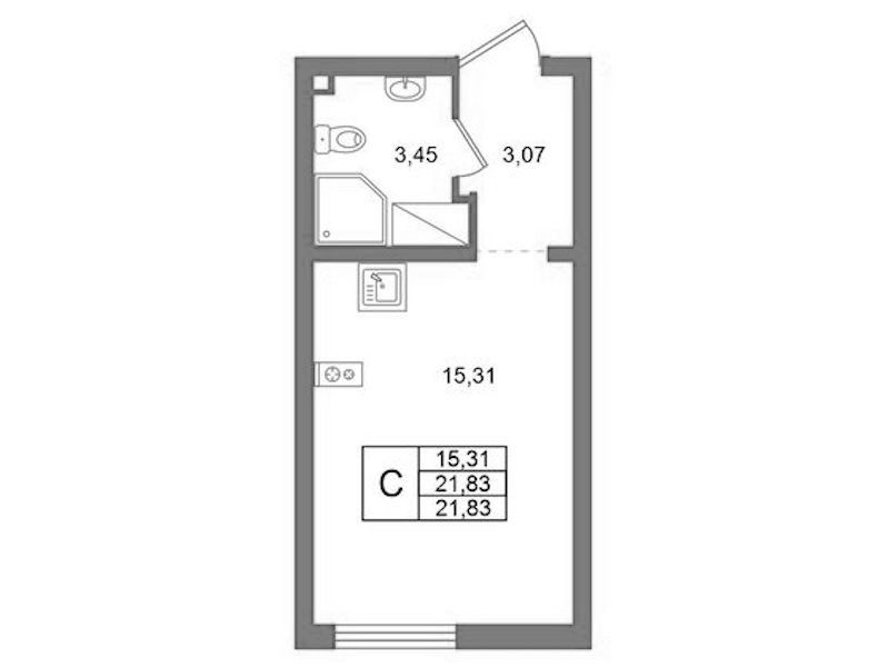 Квартира-студия на 14-ом этаже 21,83 кв.м