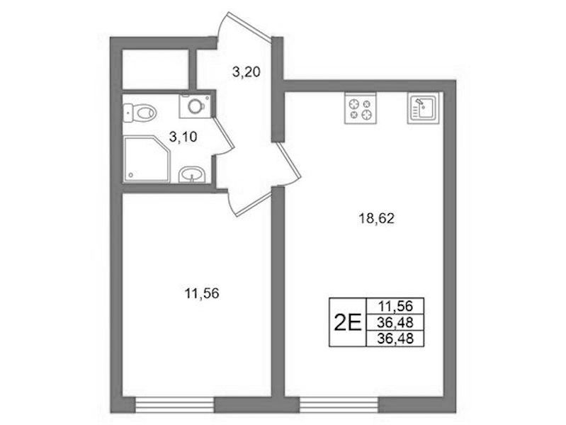 Однокомнатная квартира на 8-ом этаже 36,48 кв.м