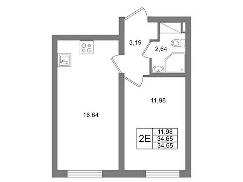 Однокомнатная квартира на 14-ом этаже 34,65 кв.м