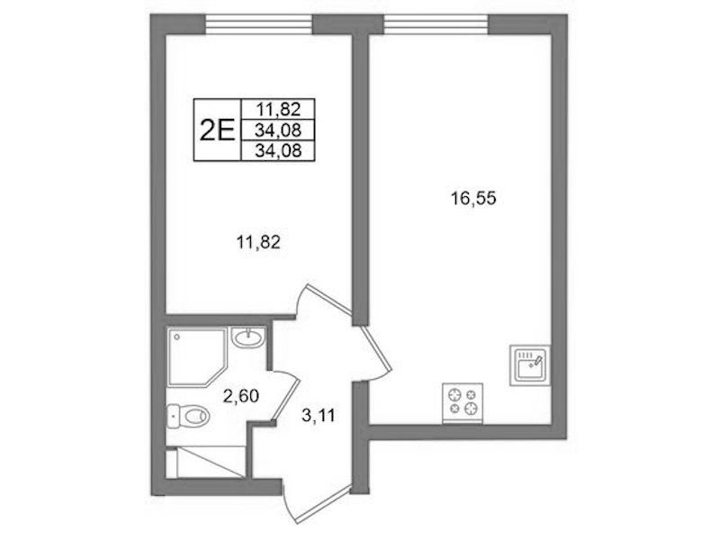 Однокомнатная квартира на 6-ом этаже 34,08 кв.м