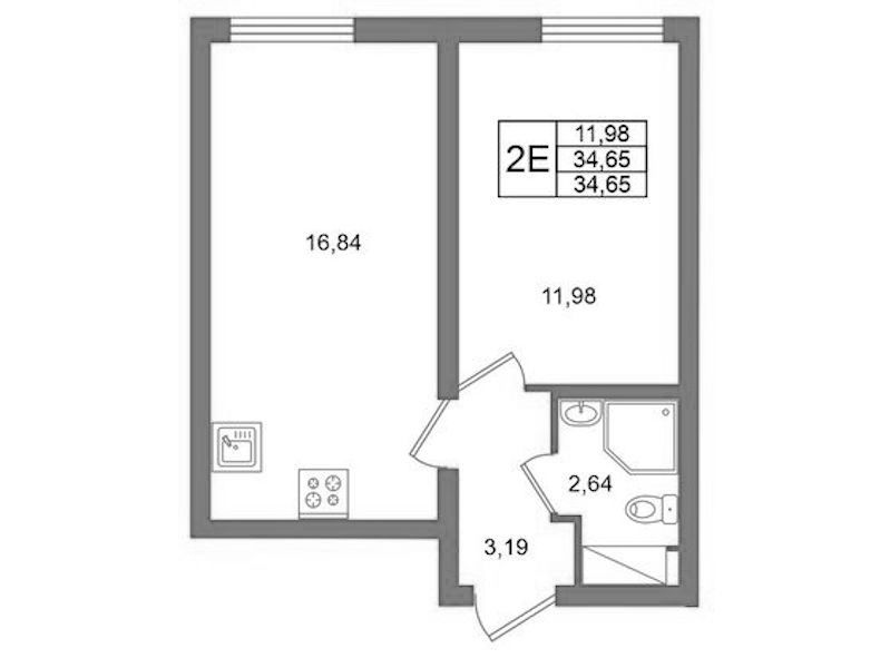 Однокомнатная квартира на 7-ом этаже 34,65 кв.м