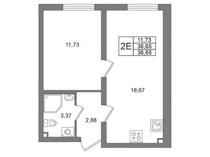 - Площадь36,65 м2
