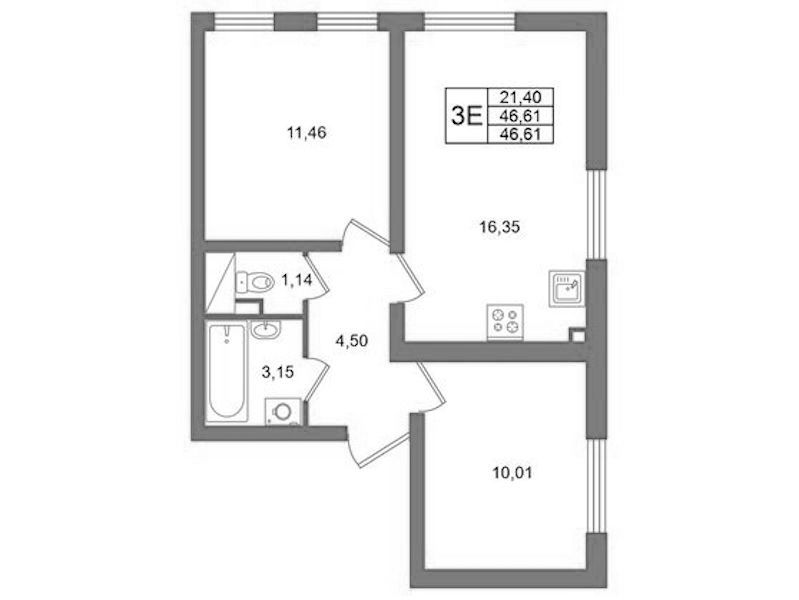 • Площадь46,61 м2