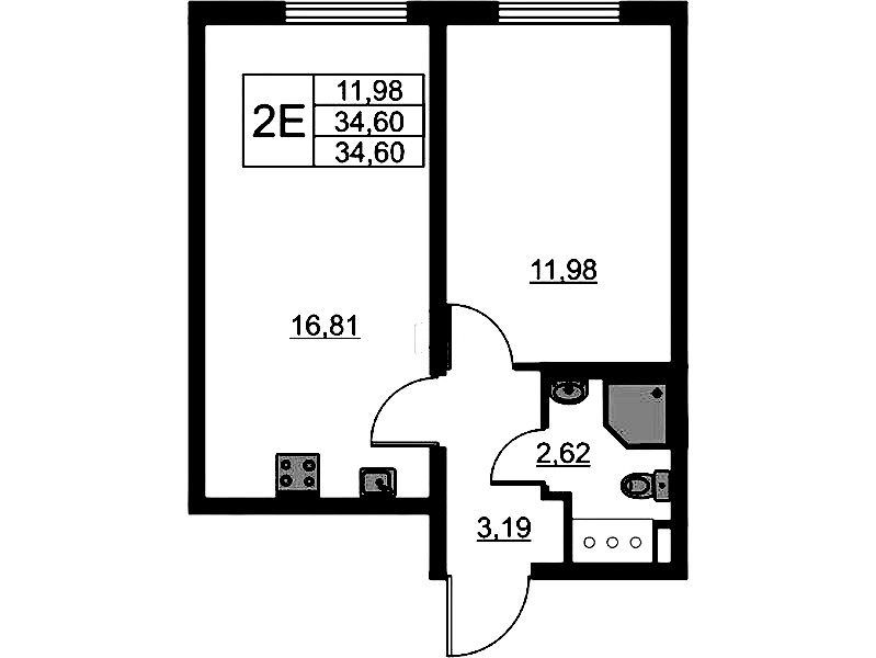 • Площадь34,6 м2