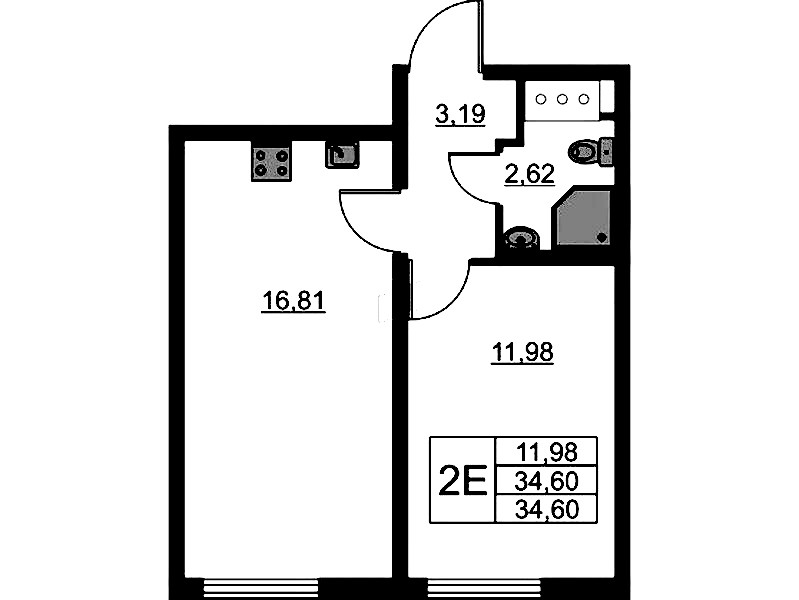 Однокомнатная квартира на 23-ем этаже 34,6 кв.м