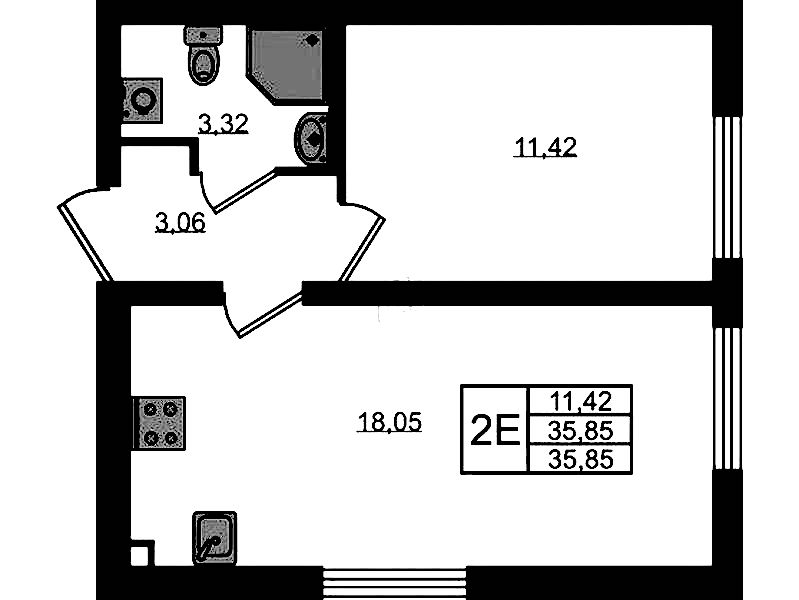 Однокомнатная квартира на 6-ом этаже 35,73 кв.м