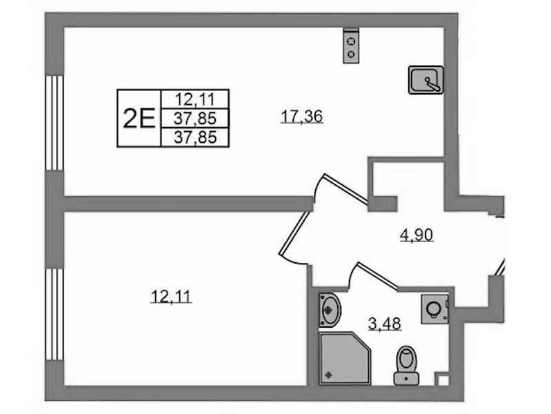 Однокомнатная квартира на 22-ом этаже 37,67 кв.м