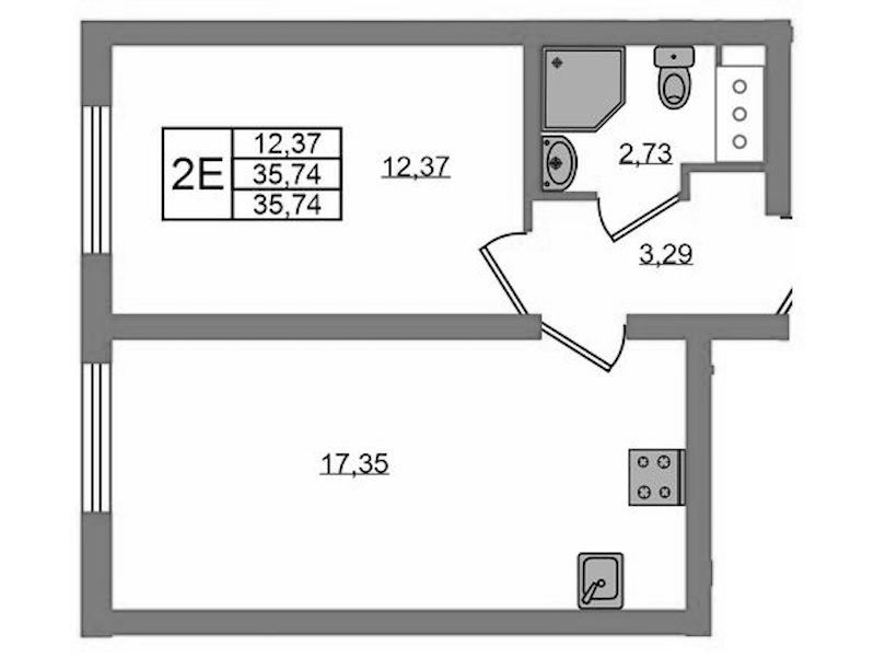 Однокомнатная квартира на 9-ом этаже 35,74 кв.м