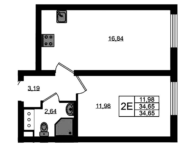 • Площадь34,7 м2