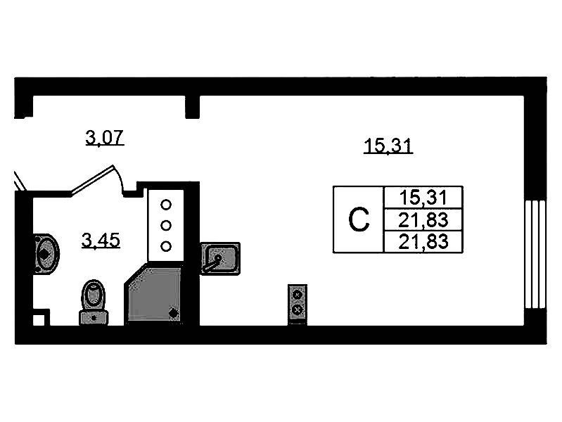 - Площадь21,8 м2