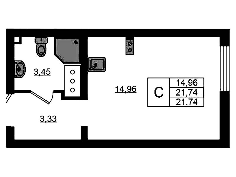 Квартира-студия на 17-ом этаже 21,74 кв.м