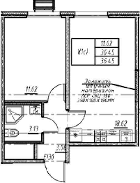 • Площадь кухни18,62 м2