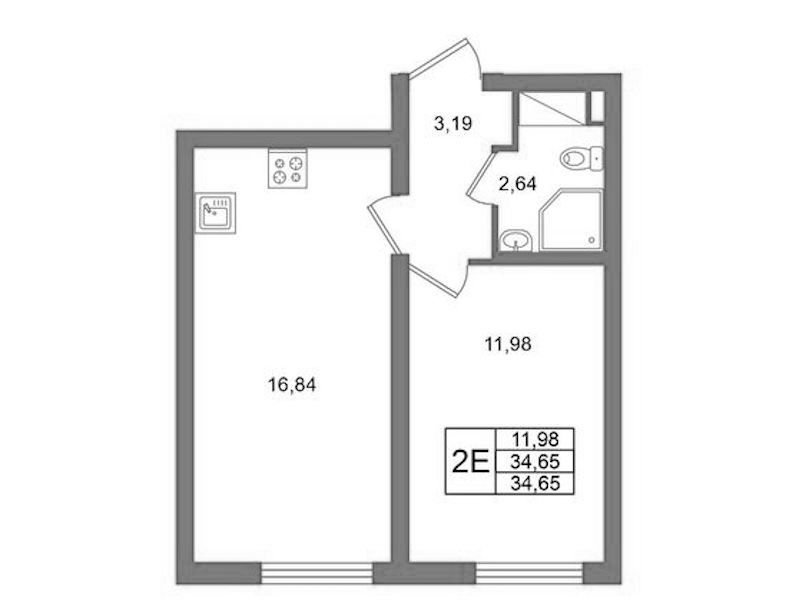 Однокомнатная квартира на 9-ом этаже 34,65 кв.м