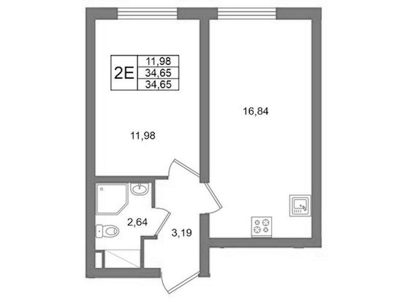 Однокомнатная квартира на 12-ом этаже 34,65 кв.м
