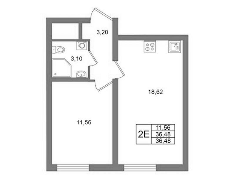 - Площадь36,48 м2