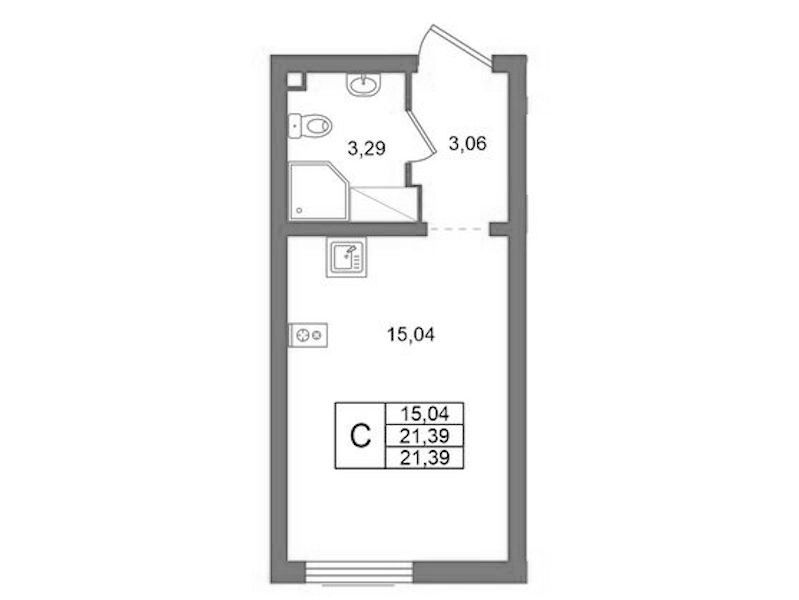 Квартира-студия на 15-ом этаже 21,39 кв.м
