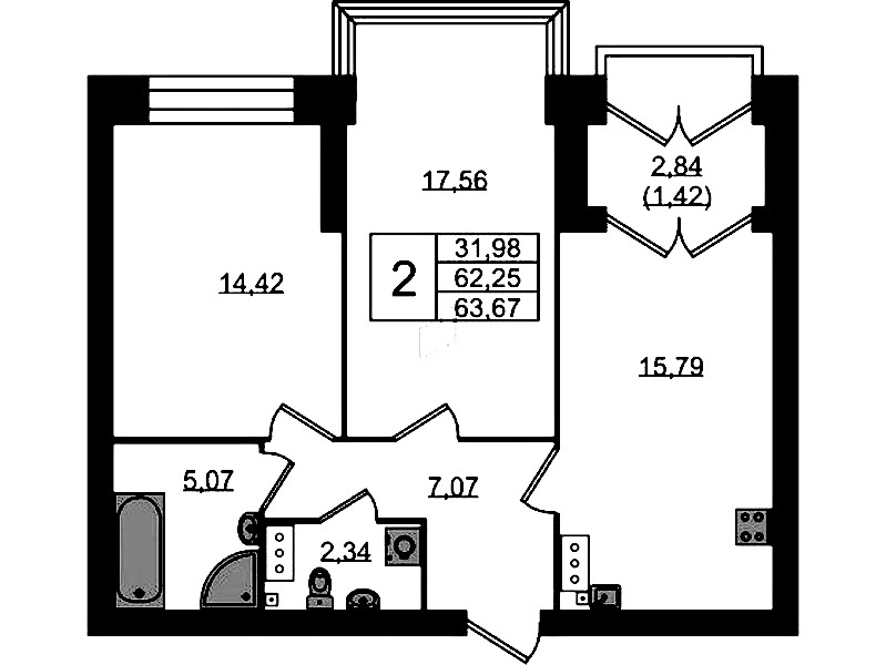 - Площадь кухни15,79 м2
