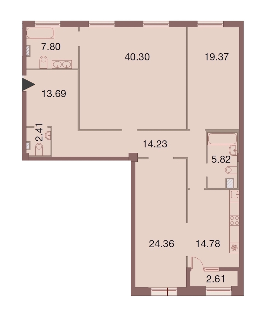 - Площадь кухни14,78 м2