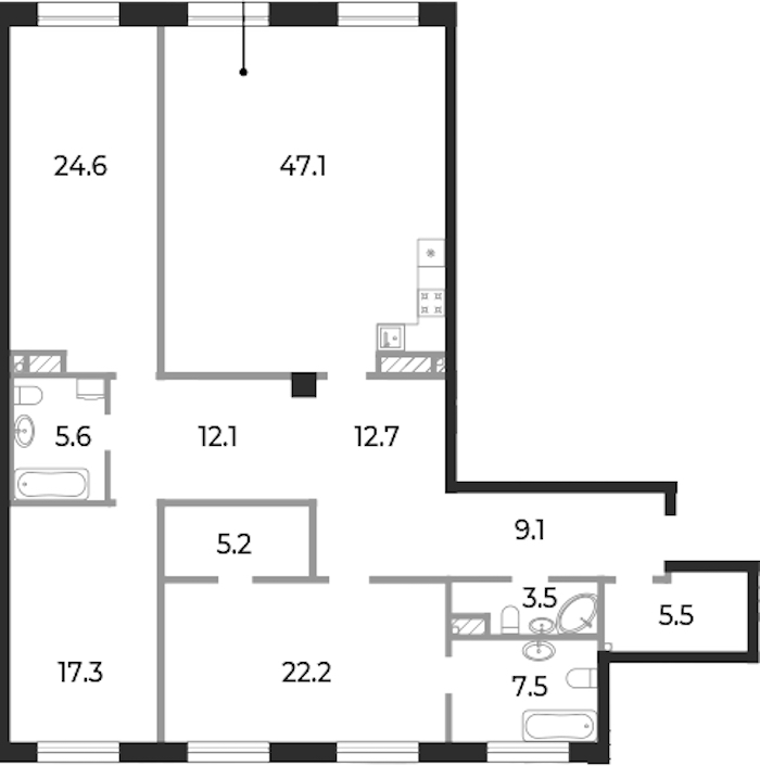 Трёхкомнатная квартира на 7-ом этаже 172,4 кв.м