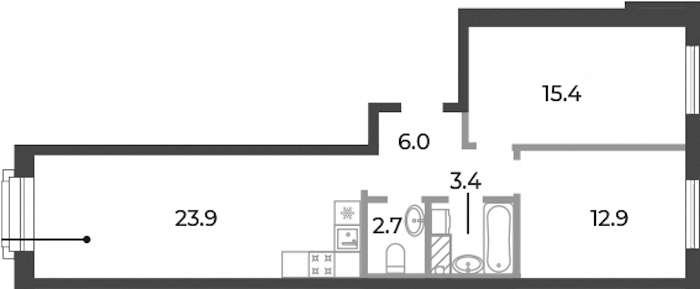 - Площадь кухни23,9 м2
