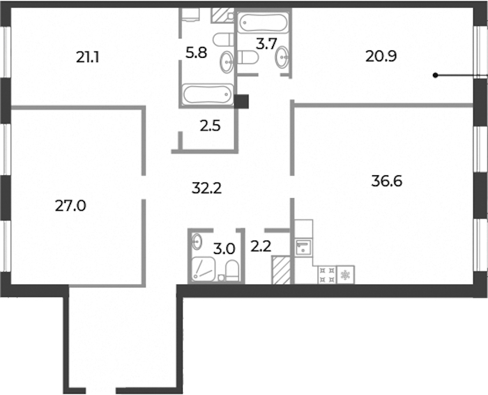 • Площадь кухни36,6 м2