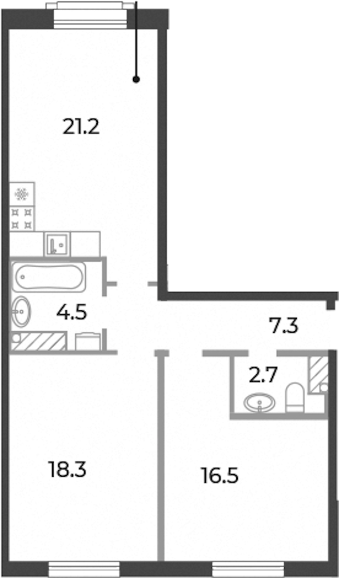 - Площадь кухни21,2 м2