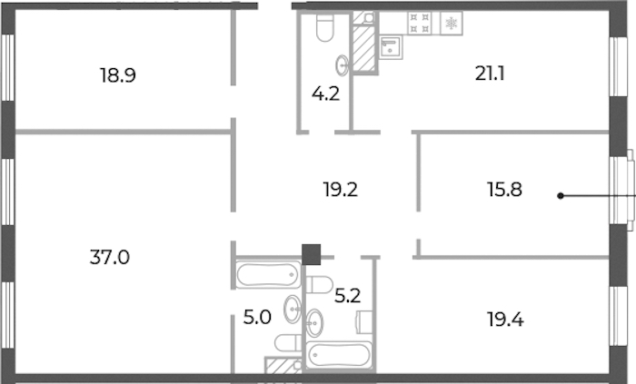 Четырёхкомнатная квартира на 7-ом этаже 146,8 кв.м