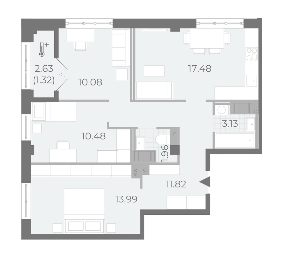 Трёхкомнатная квартира на 7-ом этаже 72 кв.м