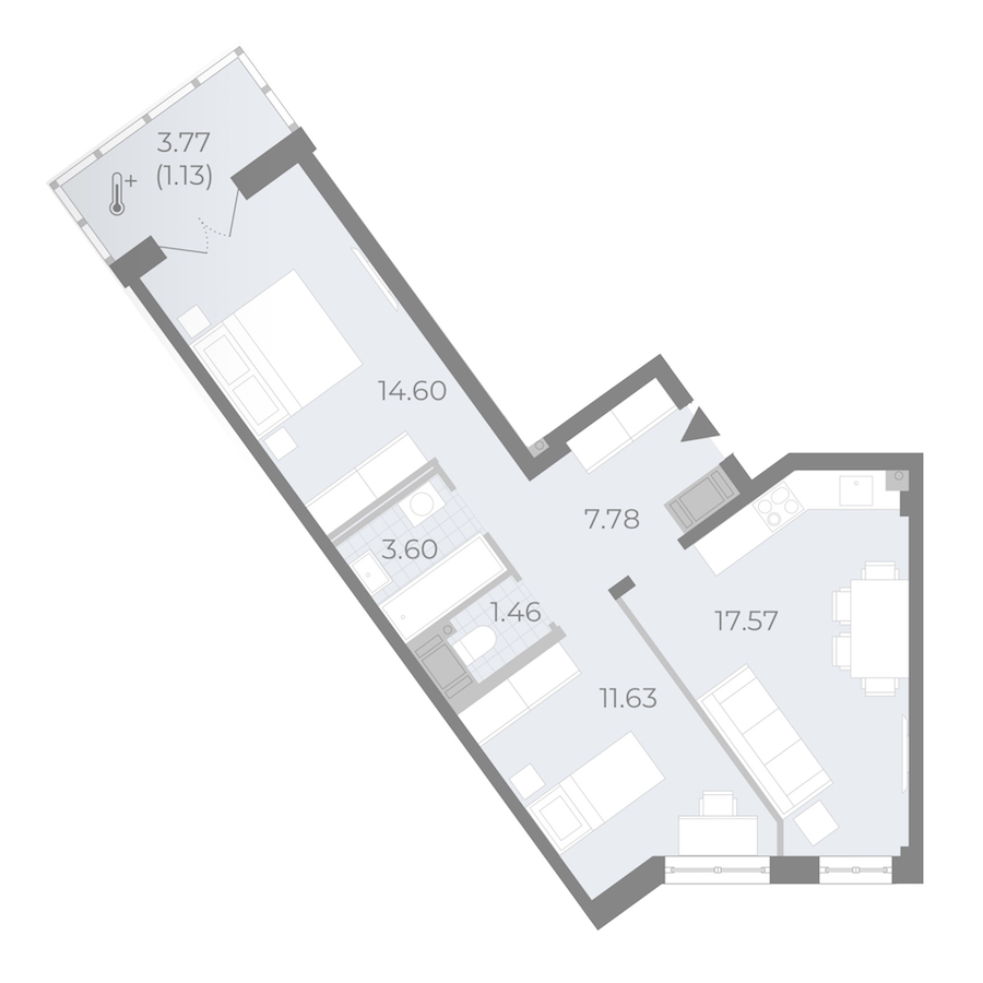 • Площадь кухни17,57 м2