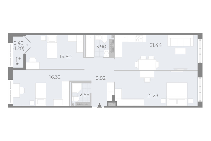 Трёхкомнатная квартира на 7-ом этаже 89,9 кв.м