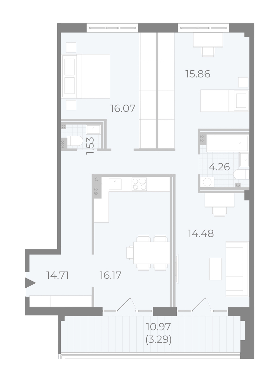 • Площадь кухни16,17 м2