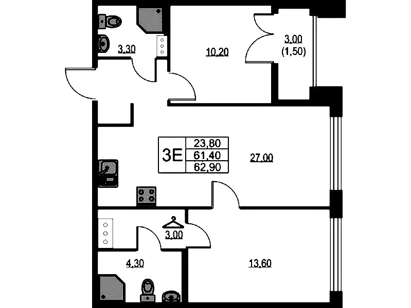 - Площадь62,9 м2