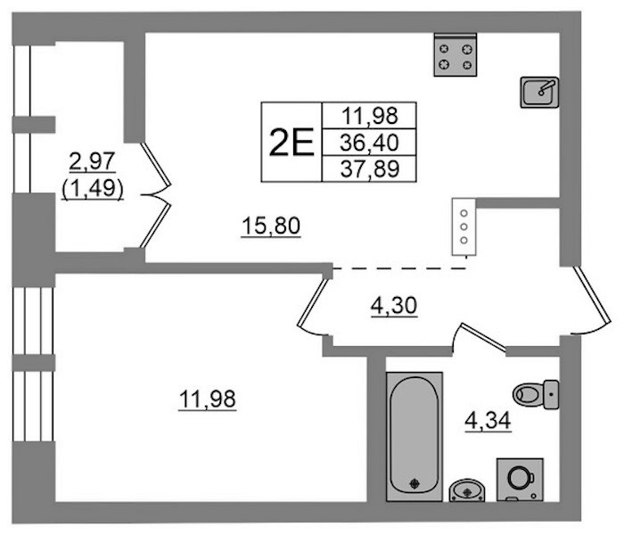 • Площадь37,89 м2