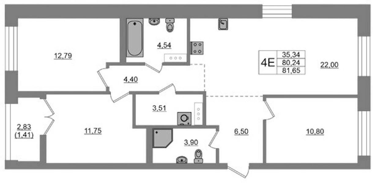 Трёхкомнатная квартира на 3-ем этаже 81,65 кв.м