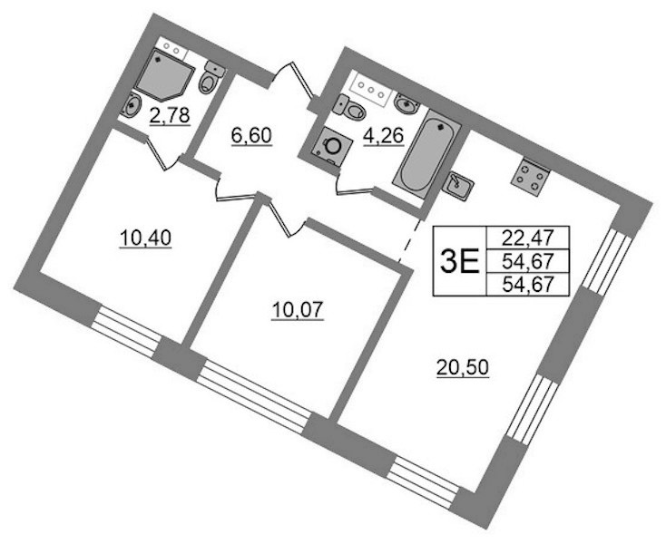 Двухкомнатная квартира на 7-ом этаже 54,66 кв.м