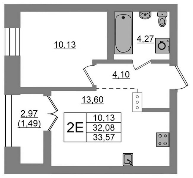 • Площадь33,57 м2
