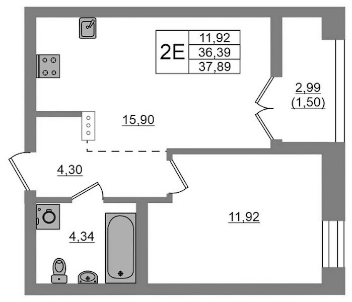 - Площадь37,89 м2