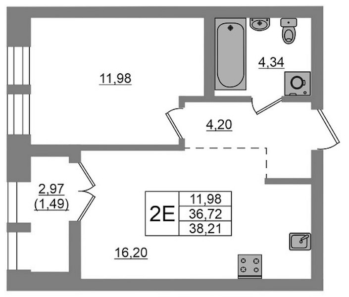 • Площадь38,21 м2