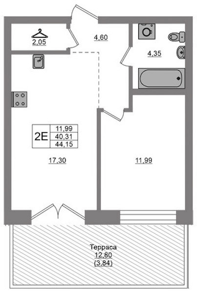 - Площадь44,15 м2
